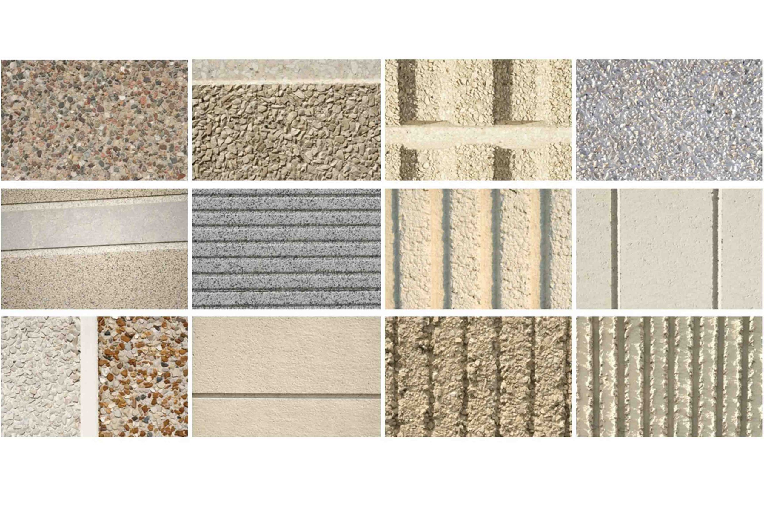 • Brüt yüzeyli, agrega görünümlü, fugalı, tırmıklı gibi farklı yüzey dokuları ve farklı agrega renkleri ile her türlü mimari tasarıma uyum sağlar.